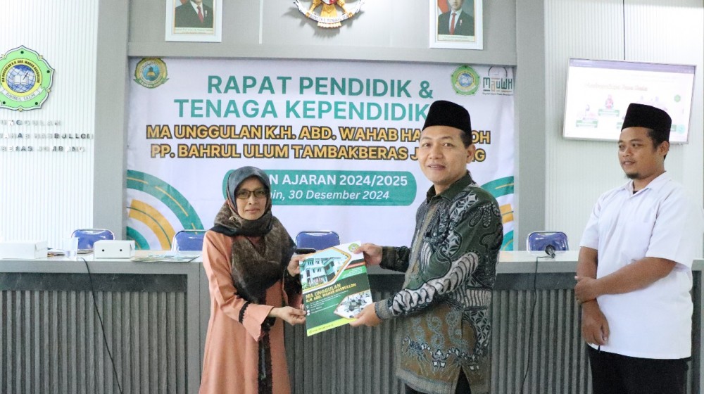 MAUWH.SCH.ID -- Madrasah Aliyah Unggulan K.H. Abd. Wahab Hasbulloh (MAUWH) Bahrul Ulum Tambakberas kembali menunjukkan komitmennya dalam meningkatkan kualitas pendidikan dengan memberikan penghargaan kepada guru yang disiplin dan berdedikasi dalam mengajar. Penghargaan ini merupakan bagian dari program madrasah untuk memastikan tidak ada jam kosong dalam proses pembelajaran.